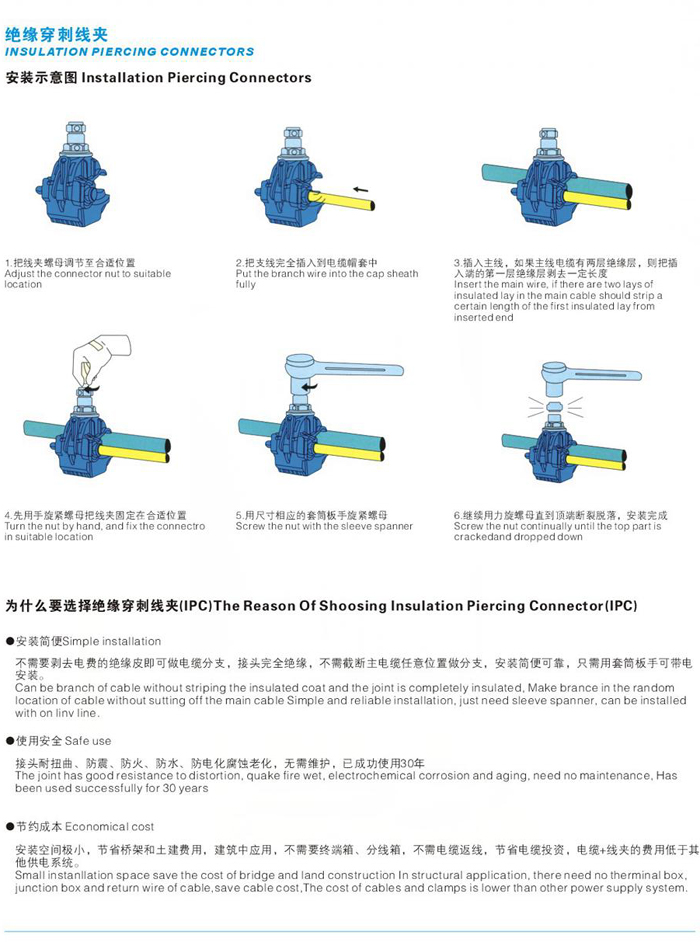 絕緣穿刺線夾,絕緣性能好。使用了特殊絕緣殼體,能抗光照及環(huán)境老化,有較高的絕緣強(qiáng)度。一定條件下,適應(yīng)帶電作業(yè)。